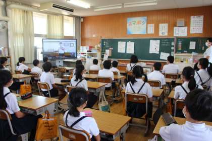 9月7日(火)全校朝会は、校長室で2学期の学級委員の任命、児童会からあいさつ運動のお知らせ、学習のめあて「学習の準備を整えよう」の話がありました。2学期から1年生も学級委員に任命されました。姿勢正しく、立派な態度で任命書を受け取りました。途中、映像が止まったり、音声が聞こえなくなったりする教室がありましたが、朝会後、教室で説明を繰り返しました。