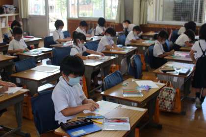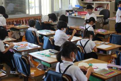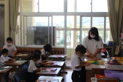 9月7日(火)生活科でアサガオを育てた記録をもとに絵本づくりをしました。幼稚園の子たちとの交流、「アサガオランド」に向けての準備です。