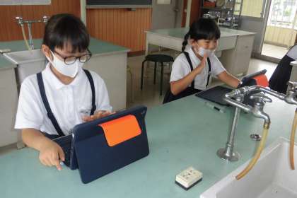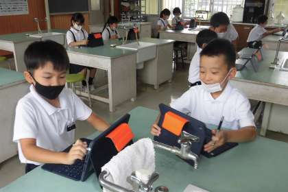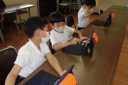 9月13日(月)コロナ流行に備え、オンライン授業の練習をしました。教室でオンライン授業の仕方をみんなで学んだ後、いろいろな教室に分かれて各自で操作しました。全員がスムーズに操作でき、難なくオンライン授業ができる状態になりました。子どもたちの操作の理解の速さに驚くばかりです!画面に映った違う教室にいる友だちに、画面越しに手を振って喜んでいました。オンライン授業の練習はしましたが、コロナの流行は収まりますように・・・。