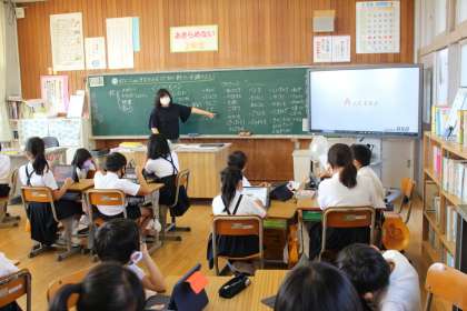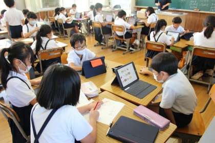 10月4日(月)総合の時間に、秋が旬の野菜や果物をタブレットを使って調べました。その中で、総合的な学習で比地で栽培されているものに絞って、これから学習を進めていきます。また、社会科のスーパーの学習にもつなげます。実際に見たり、体験したり、タブレットで情報を探ったりして学習を深めたいです。