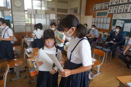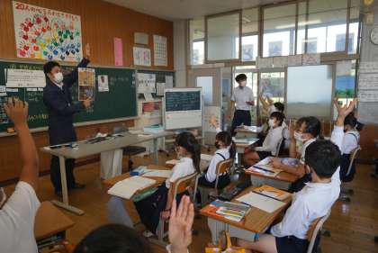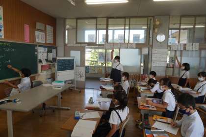 10月6日(水)校内研修で4年生の社会「自然災害からくらしを守る」の授業研究を行いました。緊急時のために、自分にできることを考え、協力して取り組む大切さを学びました。三豊市危機管理課の高橋さんも一緒に授業に参加していただき、専門的な立場で自分にできることを、力を合わせて取り組んでほしいと話していただきました。一生懸命考え、友だちと交流し、これからの自分の在り方について考えを深めることができました。