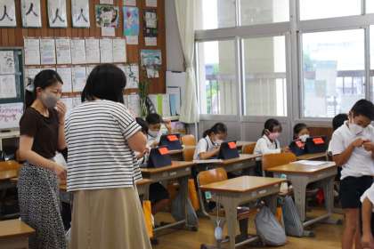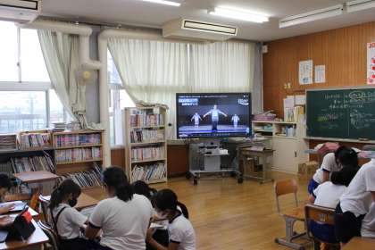 10月11日(月)は久しぶりの雨で、昼休みは外で遊べませんでした。3年生・4年生・5年生はタブレットを使って、タイピングの練習や、ドリルの問題をして思い思いに過ごしていました。運動学習発表会のダンスの参考になるビデオも流していましたが、タブレットに集中していました。