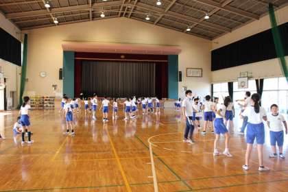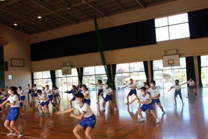10月14日(木)5・6年生が運動学習発表会のソーランの練習をしました。胸をはって堂々と踊っています。かけ声も勇ましいです。ソーランをできるうれしさが伝わってきます。さらによくしていくために、グループに分かれて、6年生が5年生に動きを教えていました。