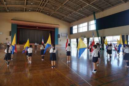 10月15日(金)鼓笛の練習を体育館でしました。春にしていたことをまず思い出して動きを確認しました。大きな動作で,動きがそろうよう練習しました。来週は運動場で、6年生と一緒に練習します。