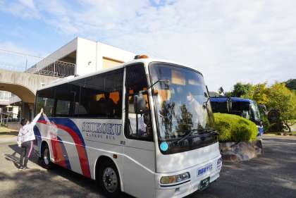 10月19日(水)秋の遠足です。4年生全員元気に出発しました。行き先は金刀比羅宮、まんのう公園です。階段をみんなで登って、見学します。国営まんのう公園では香り袋作り体験をします。