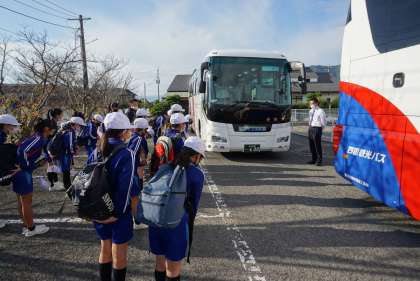 10月19日(水)秋の遠足です。5年生全員元気に出発しました。行き先は琴平町のにしきや瀬戸内海記念公園、今治造船丸亀です。にしきやでは和三盆づくりを体験します。瀬戸内記念公園で活動した後、今治造船丸亀で工場見学をします。