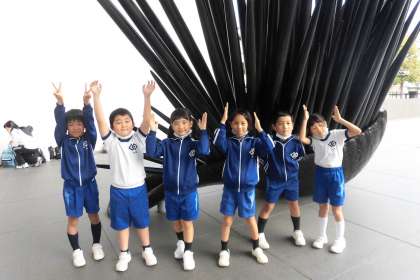 猪熊弦一郎現代美術館に行きました。図工の時間に、猪熊弦一郎さんの作品鑑賞をしたり、カードゲームをしたり、色塗りをしたりと、様々な勉強をしていたので、「この絵、こんなに大きかったんだ!」「この絵は、きっとアメリカで描いた絵や!」「この絵は、きっと〇〇な思いで描いたと思う」など、学芸員さんが感心してくれるほどよく鑑賞できていました。鑑賞マナーも守れていました。