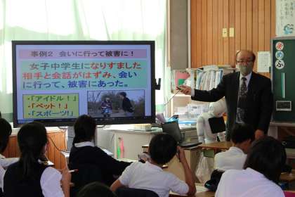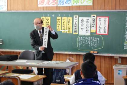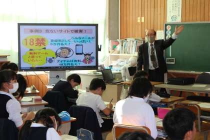 11月19日(木)香川県警のスクールサポーターの鎌田さんより「安全なネット利用」について教えていただきました。ほとんどの児童がユーチューブや対戦ゲーム、SNSなどの活用経験があります。トラブルや犯罪に小学生が巻き込まれている事例を具体的に教えていただき、安全に利用できる具体的な注意事項を教えていただきました。