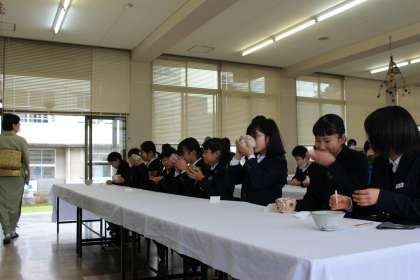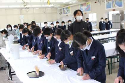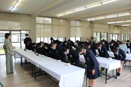 3月5日(金)5年生が今までの茶道体験をもとに6年生を招いてのお茶会を催しました。指導者の岡根先生から教えていただいたもてなしの心を発揮できるよう所作に気を配りました。6年生は昨年予定していたお茶会が臨時休業でできなかった経験もあり、感慨深くお茶を味わいました。お茶菓子は個別の包装を用意したり、一方通行でお茶を運んだりして感染症対策も取り入れた様式のお茶会ができました。