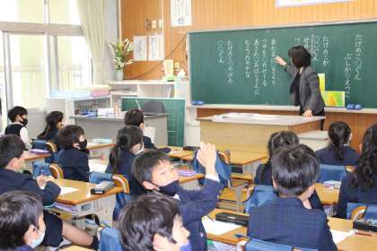 2年生は、国語「たけのこぐん」の学習をしました。1時間の授業で、ただ読むのではなく、たけのこの気持ちになったり、たけのこになりきったり、言葉の意味をよく考えたりすることができました。最後は、詞の音読が上手になり、ほぼ暗唱することもできました。よくがんばりました。