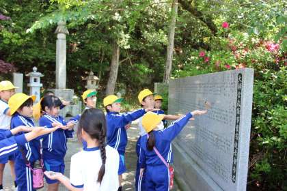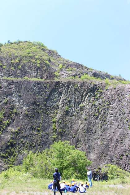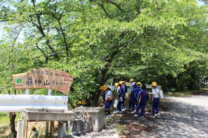 下山後、登り口で、ヤマガラにひまわりの種の餌やりを体験することができました。採石場では、切り立った岩肌を見て、自然の雄大さを実感しました。身近にあるこの爺神山のすばらしさをこれからも調べ、分かったことを発信できるよう今後学習を進めていきます。