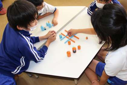 9人の茶道クラブは和室で岡根先生から、作法や所作のもとになる心遣いなどを教えていただきました。12人のゲームクラブは生活科室でゴブレットゲーム(〇×ならべ)を楽しみました。19人の野外活動クラブは、学校裏の皇子が岡で自然散策を楽しみました。一人ひとりがタブレットを持って、見つけた自然を写真に収めました。