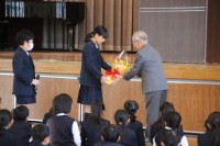 5月18日(火)の全校朝会は、放送朝会でした。陸上大会の表彰、養護教諭から熱中症への注意、児童会より芸能自慢大会の参加者募集に続き、ALTのマリー先生と学校長による「英語となかよし」の放送をしました。あいさつの後、マリー先生の好きな色や動物を当てるクイズ、映画「となりのトトロ」の挿入歌「さんぽ」の英語バージョンの紹介などがありました。各教室でクイズに答えたり、英語の歌を歌ったりして、英語にふれあえる機会となりました。