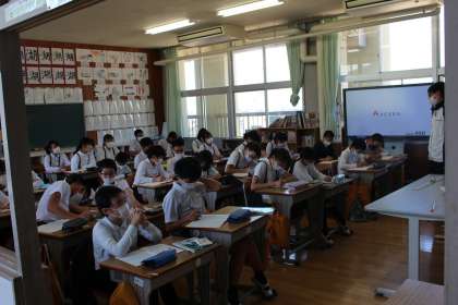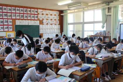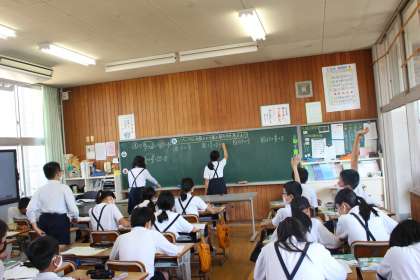 5月23日(日)1時間目いろいろな分数のかけ算の解き方を考えようというめあてで、計算の解き方を練習しました。整数や仮分数、小数が混じった分数のかけ算の方法をみんなで考え、一般化し正確に解けるように練習しました。みんな集中して取り組んでいます。