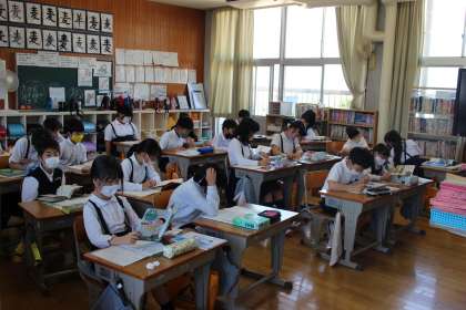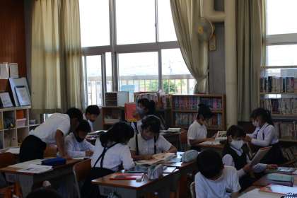 5月23日(日)1校時に自分のおすすめの本を友だちに紹介するため準備をしました。紹介するための作者や内容の基本の情報と、自分らしさを生かして好きなところや選んだ理由に分けて紹介するための準備をしました。ノートに書いたことで友達と交流し、清書のための参考にしました。