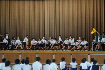6月4日(金)の芸能自慢大会では2年生全員でよさこいソーランを踊りました。昨年度の高学年のソーランに憧れ、自分たちもしてみたいと思い挑戦しました。何日か、帰りの会で校舎中に響くかけ声で練習を重ねました。元気で息の合った2年生のソーランに大きな拍手が送られました。