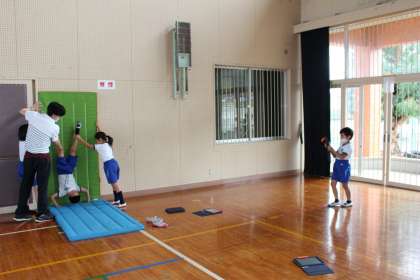 6月4日(金)体育の時間に、倒立の練習をしました。グループに分かれて、補助したり、マットを押さえたりして協力して練習しました。また、タブレットを使って、動画を撮影し、自分の動きを後で確かめられるようにしました。