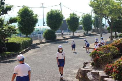 6月10日(木)の朝の活動で第2回のスポーツタイムがありました。前回の反省を生かして6色でそれぞれのスポーツを楽しみました。(赤:ドッジボール、白:フルーツバスケット、青:逆逃走中、黄:王様ドッジボール、緑:しっぽとり、桃:ドッジボール)活動の合間に日陰で休憩をしているチームもありました。6年生がよく考えています。