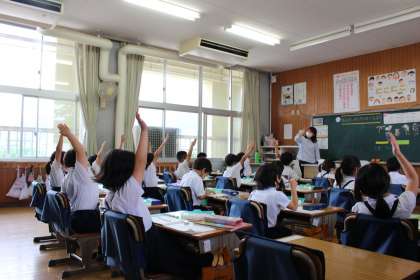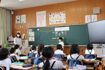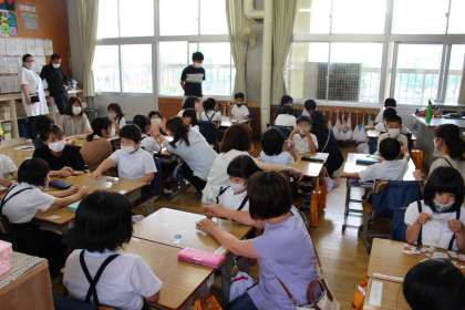 問題には、たくさんの動物が登場し、大盛り上がりでした!「あわせて」「ふえると」のどちらの場面なのかをブロックを手で操作しながら考えたり、式に表したりができました。授業後半には、保護者の方々にご協力頂き、カードゲーム方式で楽しく、たし算カードの練習もでき、子どもたちは大喜びでした!6時間目ですが、集中して本当によく頑張りました!!さすが1年生!!またご家庭でも、頑張りを褒めてあげてください😃