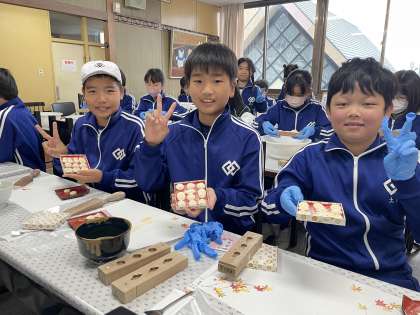 秋の遠足5年生 公開日 2024/12/01 更新日 2024/12/01 5年生 5年生は、体験盛りだくさんの遠足でした。 まずは、にしきやで和三盆作り!次に三井牧場で、バター作りと牛のえさやり体験をしました。最後は満濃森林公園でおいしいお弁当とおかしを食べました。 雨の影響で予定変更することもありましたが、笑顔いっぱいの遠足となりました。