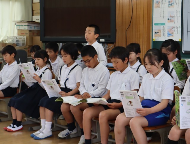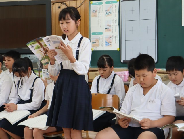 4月25日(金)1校時、4,5年生が音読発表交流会をしました。