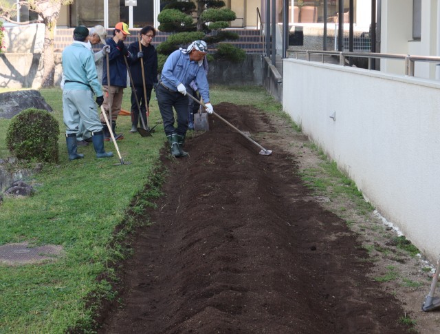 公民館の方8名が、ゴーヤを植えるための畝を作ってくれました。