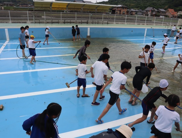 4年生が小プールを、5,6年生が大プールと更衣室を担当しました。