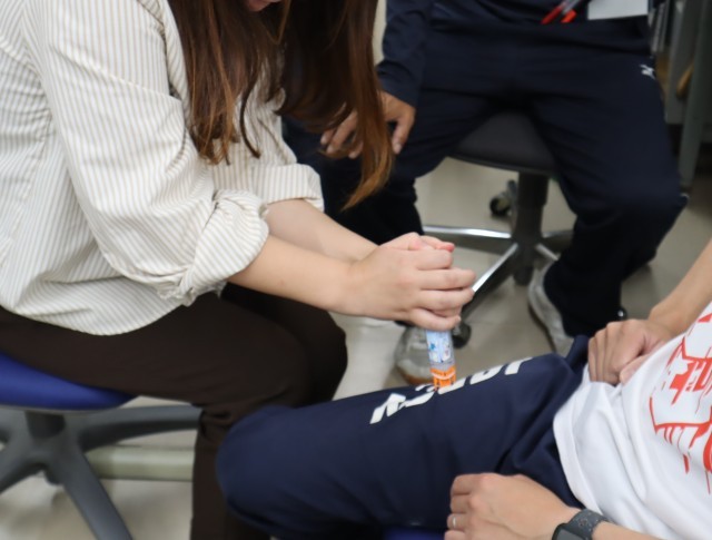 三豊市防災士の方、危機管理課の方を講師に招き、実際の緊急時を想定した演習を行いました。