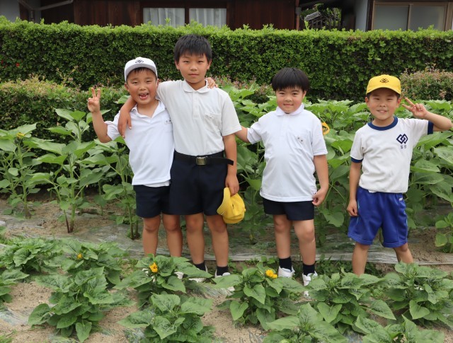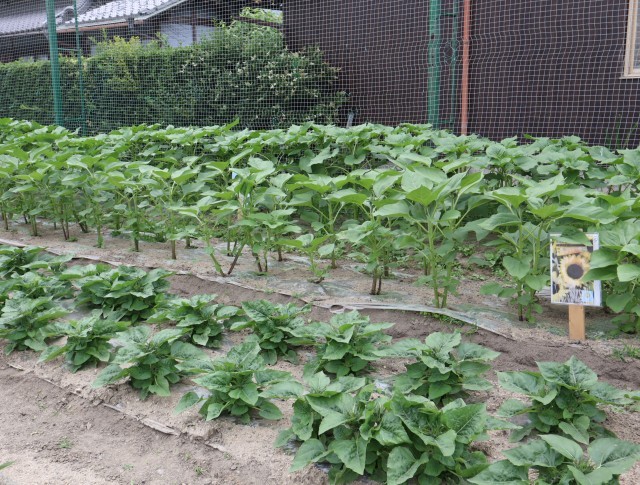 5月8日に全校生で苗植えをしたひまわりが大きく育っています。