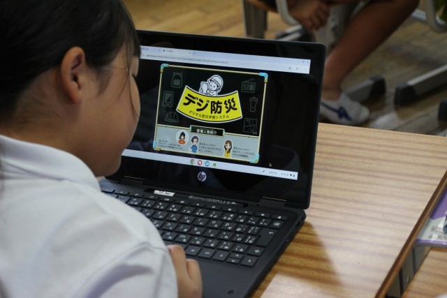 6月11日(水)朝の活動で、全校一斉にデジ防災に取り組みました。