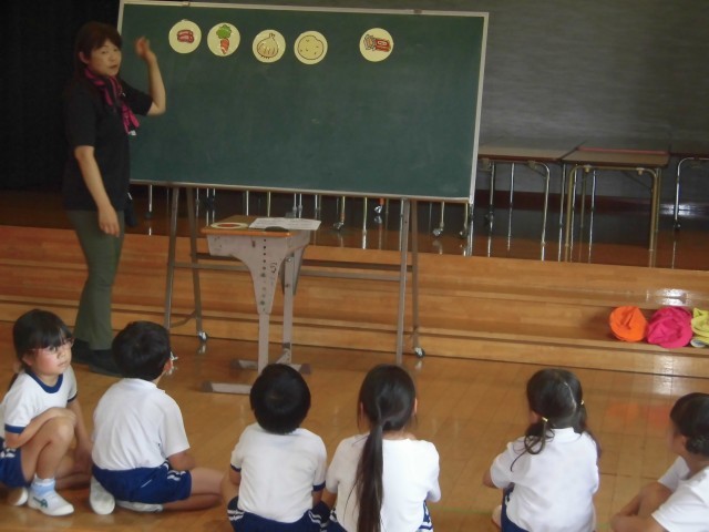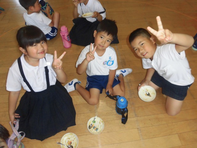 6月20日(金)比地二幼稚園で、1年生と年長さんがカレーパーティーを行いました。