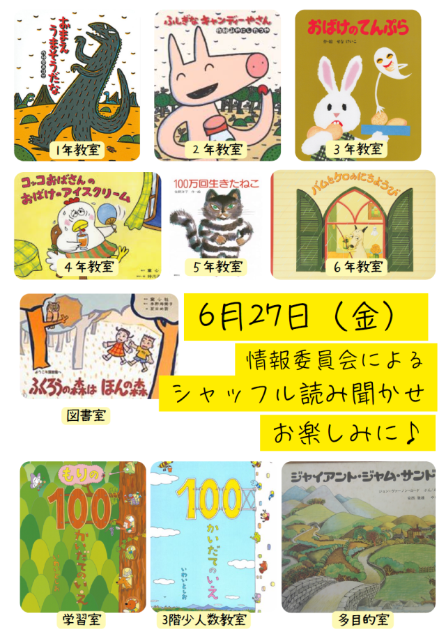 6月27日(金)朝の活動で、シャッフル読み聞かせを行いました。