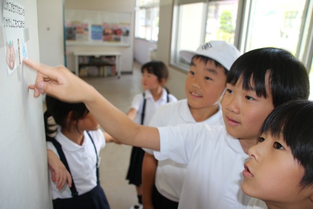 学校内8カ所に掲示した問題を順番に解いていき、ゴールをめざしました。