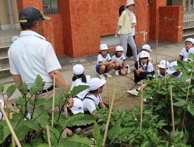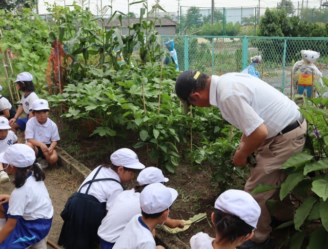 野菜の先生「西脇さん」に、収穫の時期、収穫の仕方、害虫から守る方法などを教わりました。