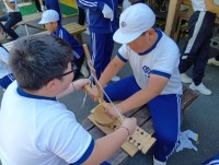 火起こし体験を楽しみました。友達と協力できる5年生。全ての班が火起こしに成功!ホ...