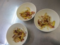 家庭科の料理実習でジャーマンポテトを作りました。ジャガイモではなく、農園で収穫し...