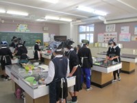 今日は6年1組さんが調理実習をしました。メニューは、昨日の2組さんと同じ、農園で...