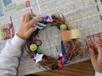 アサガオのつるを使ったクリスマスリースが出来上がってきています。材料へのご協力、...