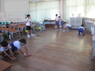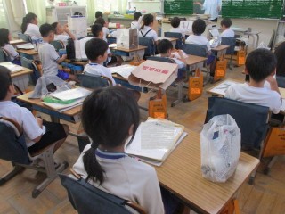 今日は登校日でした。久しぶりに上小っ子たちが登校してきました。朝から暑い日でしたが、夏休みに作った作品を大事そうにしっかりと持ってきていました。短い時間でしたが、各学級、掃除をしたり、本をかりかえたり、宿題や作品を集めたりと盛りだくさんな活動をしていました。中には、2学期の係りや当番を決めたり、席替えをしたりしている学級もありました。最後は集団下校です。暑い中の登校日、お疲れさまでした。9月1日にまた元気な笑顔を見せてください。9月も暑い日々となりそうです。熱中症対策での登下校は9月いっぱいも続きますので、親子で相談してお願いします。