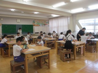 自分の顔(4年1組) 公開日 2025/09/09 更新日 2025/09/09 4年生 図工の時間、鏡で見ながら自分の顔を描いています。耳はどのへんについているかな等、一つひとつの部分を確かめながら描いています。