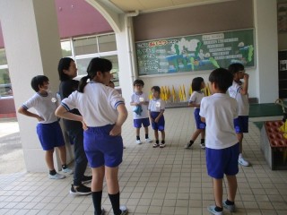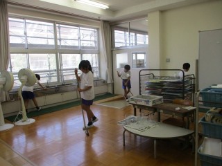 今日から2学期の、新しい清掃場所での掃除が始まりました。昼休みには、班長さんが集まり、同じ場所を掃除する子の名前を確かめたり、分担や掃除道具の確認などすることを確認したりしました。掃除が始まると、まず、集まって分担や掃除の仕方を話しました。早いところは、さっそく掃除を始めていました。