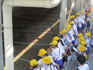 続いて、バイオマス資源化センターみとよに行きました。燃やせるごみを燃やさずに資源にする、日本初の「トンネルコンポスト方式」で処理をしている施設です。ここでは、微生物の働きでごみが分解されていることを詳しく教わりました。また、工場内のにおいを木のチップが敷き詰められたバイオフィルターで分解するときにも微生物が活躍していることを知りました。1学期に続いて、微生物のすごさを感じることができた4年生です。