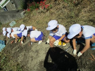 今日は待ちに待った芋ほりの日でした。農業委員の方々や上高瀬分館の方々がお世話してくださる中、1年生は幼稚園の年長さんと一緒に、どんどんサツマイモを収穫することができました。事前に草刈りやつるの除去をしてくださり、今日も、掘りやすいようにスコップで芋をうかせてくれていました。ありがとうございました。