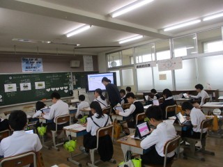 献立を考えよう(6年1組) 公開日 2025/10/22 更新日 2025/10/22 6年生 家庭科の時間です。前の時間に考えた献立の内、主菜か副菜について、料理法や材料などを変えたメニューを考えました。最後は、タブレット上で、良いところやアドバイスをおくり合いました。