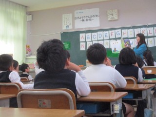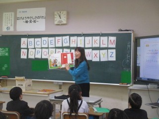 3年生の外国語活動はアルファベットです。形の仲間分けや点つなぎなどをしました。最後は、ハロウィンについての2冊の絵本の読み聞かせをしていただきました。1冊は英語の本でしたが、仕掛け絵本になっていて、次は何が出てくるかなと想像しながら楽しむことができました。