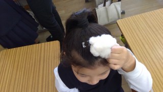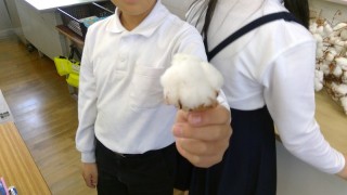 地域の方が、綿の実を届けてくださいました。社会科で「讃岐三白」を学習する4年生が、綿を実際に見て触れる活動をしました。今日、体験した4年1組さんは、「ふわふわしている」「わたあめみたい」などの感想をもちました。