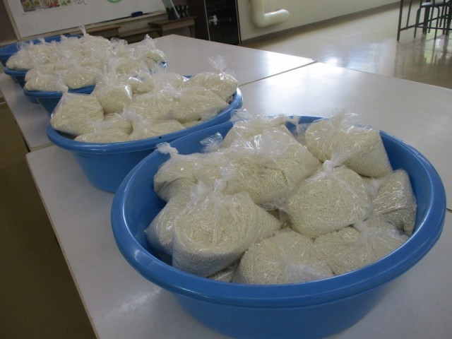 もち米 公開日 2025/11/12 更新日 2025/11/12 5年生 ランチルームには、5年生が袋詰めをしたもち米がたくさんあります。今年も、16日(日)の地区文化祭の第1部、午前の小学生の学習発表では、ランチルーム前で5年生が販売する予定ですので、ぜひ購入にご協力をいただけますよう、よろしくお願いいたします。