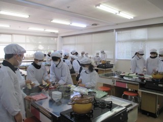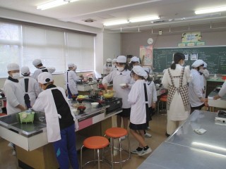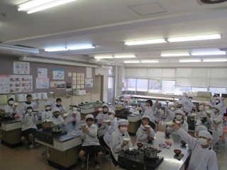 調理実習で、ご飯を炊いて、みそ汁を作りました。どのグループも協力し合って実習をてきぱきと進めることができました。試食したご飯もみそ汁もとてもおいしかったです。特に、おこげの香ばしさと大根のおいしさは格別でした。