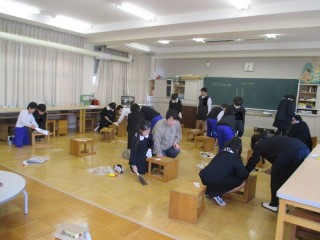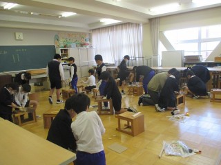 先日下絵を描いていた「のこぎりギコギコ」は、いよいよのこぎりを使っての作品づくりに入りました。慎重に、協力し合って取り組んでいました。