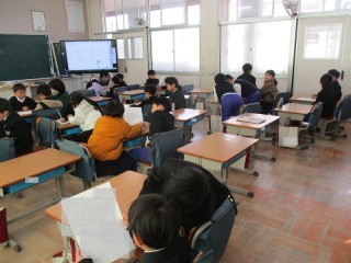 入学説明会で、新1年生に紹介する学校の行事や教科の勉強について、説明の練習をしています。